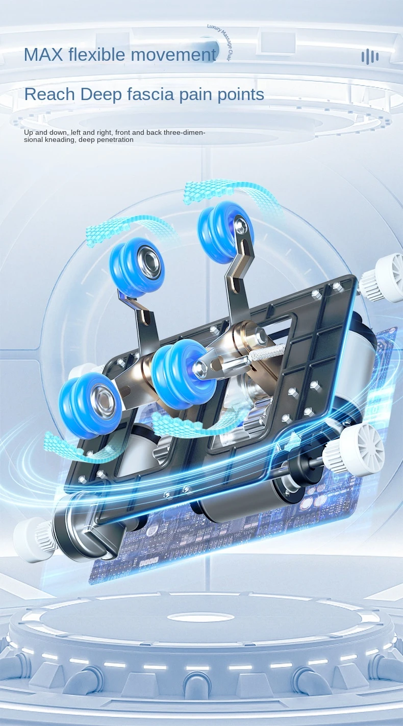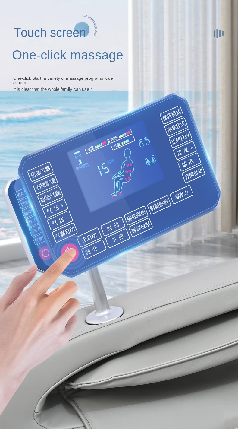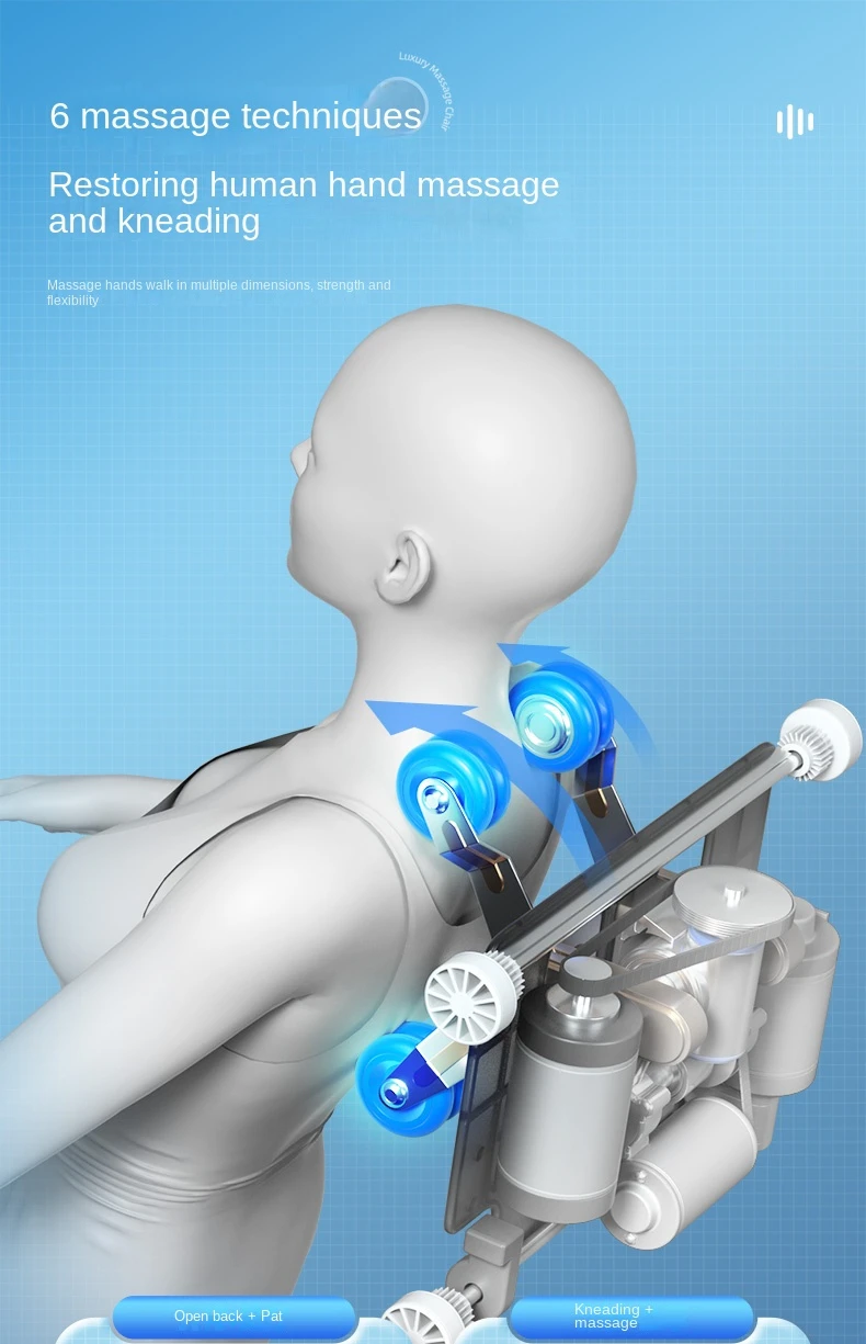 Arm air bag massage,Shoulder airbag massage,Plantar roller massage,Massage techniques: kneading, finger pressing, massage, tapping and tapping,Massage intensity adjustment, waist and leg heating,